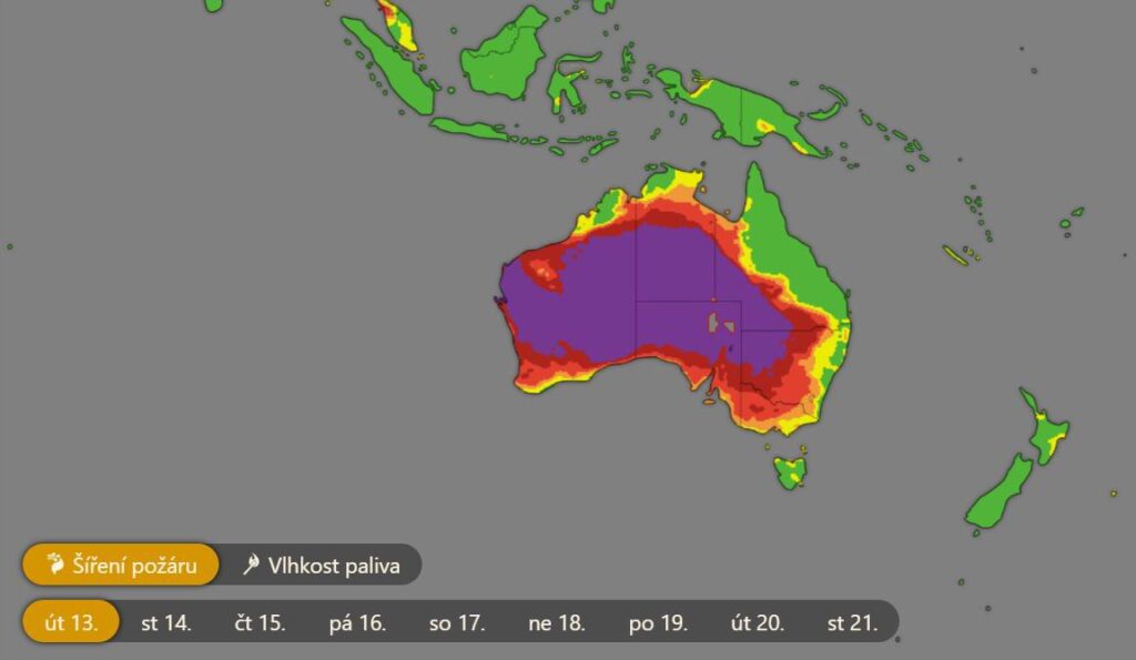 Úvodní obrázek: Riziko šíření požáru v Austrálii Zdroj zpravodaj CzechGloge