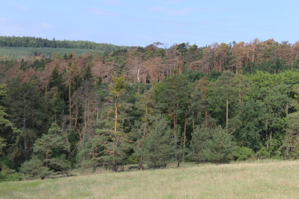 Lesy, které trpí stresem z nedostatku vody, se táhnou jižní polovinou Čech až na Vysočinu, špatná je situace také v západní části Krušných hor, ve frýdlantském a šluknovském výběžku, Jeseníkách, východní části Beskyd a v dalších moravských pohořích, jako jsou Hostýnské vrchy, Javorníky a Chřiby.