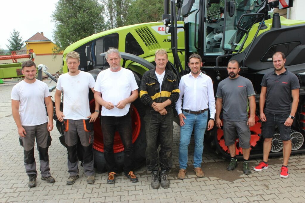 „Je to o tom, jak se o vás prodejce stará,“ vysvětluje Petr Blažek. „Spolupráce s původním dovozcem techniky Fendt byla velmi dobrá, poté, co přešel pod nadnárodní společnost, se vybudované vazby zpřetrhaly. Naopak se společností U + M Servis, která je od nás poměrně daleko, jsme si padli do oka, zejména s Ing. Matějem Hanykem. První ojetou mlátičku Claas Mega jsme si ještě pořídili v Modleticích a pak už jsme spoléhali na třeboňskou firmu. Tři starší mlátičky Claas Lexion na pásech, které stále u nás pracují, jsme si přivezli z Anglie, a obchod nám zprostředkoval Matěj Hanyk. Stejně tak nám dohodil dva starší Xeriony v Německu. Samozřejmě se o tuto techniku, pokud potřebujeme, třeboňská společnost stará.“