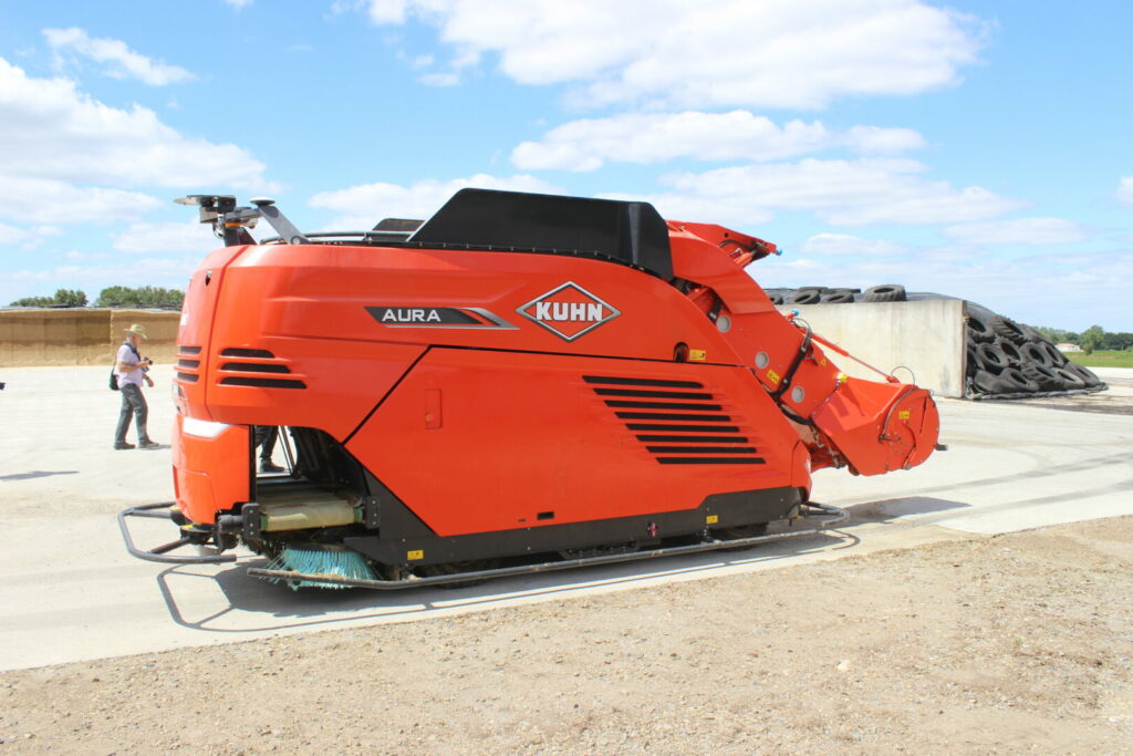 Vůz s plně naloženou vanou cestou k ustájení dojnic musel z jízdy po rovině vjet na krátké stoupání. Hned na začátku stoupání elektronika automaticky zvýšila otáčky motoru – „přidání si plynu“ bylo znatelné sluchem. Díky hydrostatickému pojezdu zůstala rychlost jízdy na konstantní úrovni. Po přejetí na rovinu se výkon motoru vrátil na původní hodnotu. Je to možné díky tomu, že Aura firmy Kuhn disponuje stejným automotivním ovládáním pojezdu, jako velké samojízdné krmné míchací vozy firmy Kuhn.*