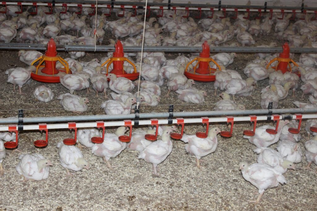 Z hlediska využití růstového potenciálu brojlerových kuřat má zásadní význam výživa. V prvních čtyřech týdnech kuřata potřebují živiny zejména pro svůj růst. Hlavní živinou, která ovlivňuje růst a složení jatečného těla jsou dusíkaté látky. Ve směsích pro výkrm kuřat je jejich hlavním zdrojem sója, která se do Evropy transportuje přes oceán. V souvislosti se snahami zmírnit produkci skleníkových plynů, se řeší nejen letecká přeprava této základní krmné suroviny, ale v případě drůbeže také efektivní podíl sóji v krmných směsích. Výsledky pokusů ukazují, že snížením podílu dusíkatých látek v krmných dávkách kuřat vykrmovaných na maso se sníží exkrece dusíku a emise čpavku, zlepší se kvalita podestýlky, stejně jako welfare a zdraví kuřat.