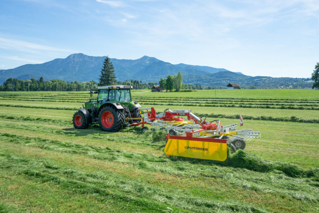 Firma Pöttinger přichází u svého nového shrnovače TOP 632 A s novým systémem nuceného řízení zadního rotoru s názvem Curvetech. Při ovládání zadního rotoru spolupůsobí dva hydraulické válce. Pracovní záběr je optimálně využíván i při zatáčení, a to díky přídavným táhlům, usazeným v prostoru mezi předním bodem otáčení hlavního rámu a hydraulickým válcem. Tak je zajištěno optimální překrývání obou rotorů.