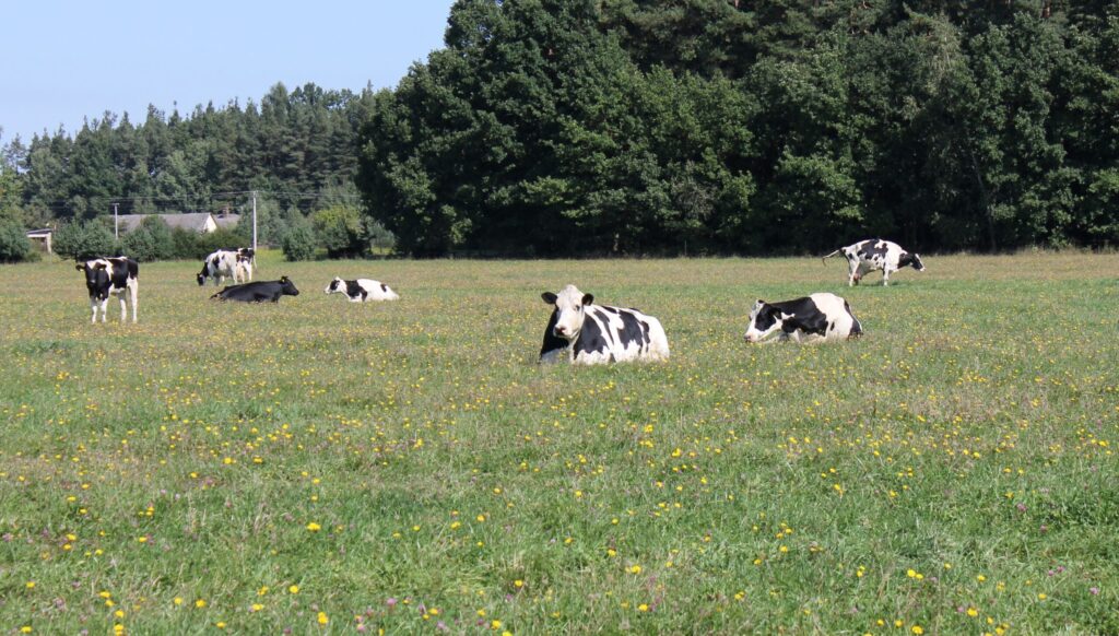 • Krávy spásající porosty jetele s 250 kg N/ha/rok (jetelotráva),