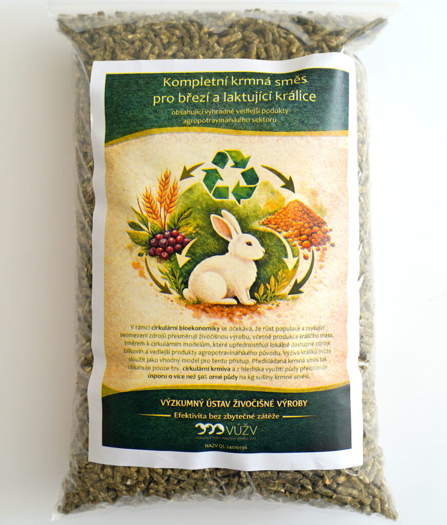 V rámci cirkulární bioekonomiky se očekává, že růst populace a zvyšující se omezení zdrojů přesměrují živočišnou výrobu, včetně produkce králičího masa, směrem k cirkulárním modelům, které upřednostňují lokálně dostupné zdroje bílkovin a vedlejší produkty agropotravinářského původu. Výživa králíků může sloužit jako vhodný model pro tento přístup. Předkládaná krmná směs obsahuje z organických komponent pouze tzv. cirkulární krmiva (lokální zdroje hrubého proteinu a vedlejší produkty agropotravinářského průmyslu) a z hlediska využití půdy představuje úsporu více než 50 % orné půdy na kg sušiny krmné směsi. Tato krmná směs zajistila plnohodnotnou produkci mléka, spotřebu krmné směsi a živou hmotnost králic, stejně jako růst a životaschopnost jejich potomstva.