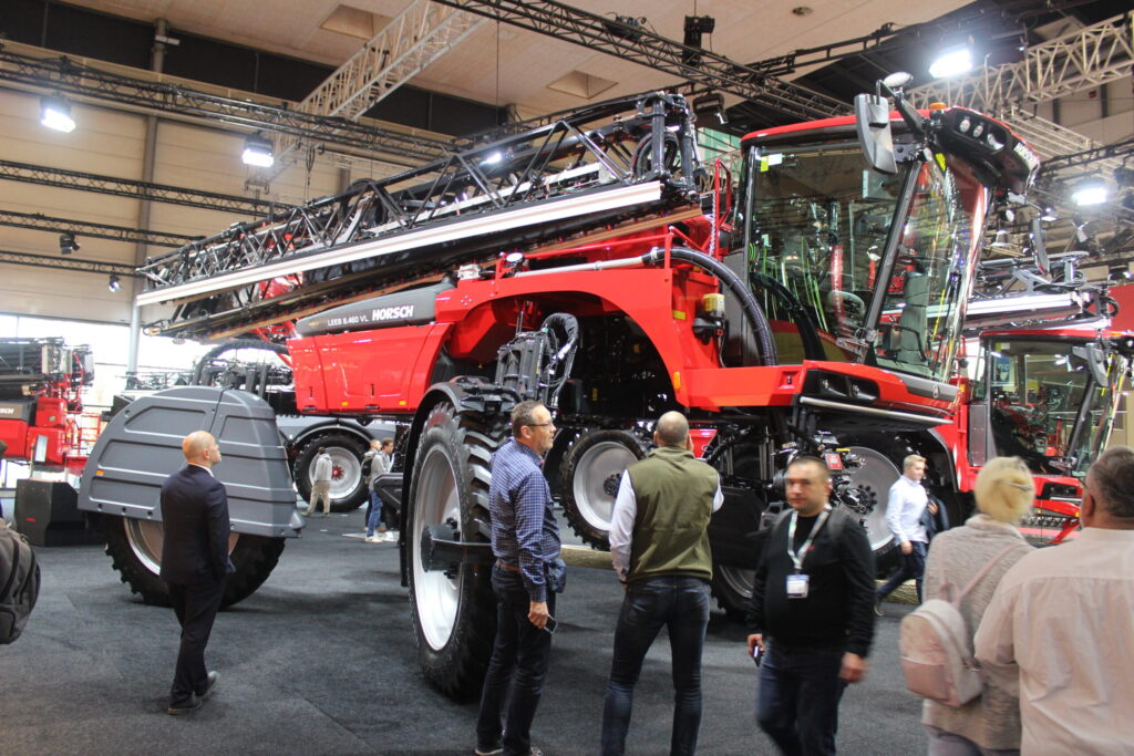 Pod druhým vystaveným postřikovačem bylo možné projít z jednoho konce na druhý ve vzpřímené poloze. Jednalo se o velký model Horsch Leeb VL, který má opravdu velké možnosti se flexibilně přizpůsobit provozním podmínkám: světlá výška může činit až 2,00 m a šířka rozchodu až 4,00 m. Volitelně je možné hydraulické nastavení výšky a šířky. Díky centrálnímu rámu je možný vnitřní poloměr otáčení 3,50 m. Nový motor FPT Industrial o objemu 8,7 l zaujme výkonem, zvýšeným z původních 300 na 460 k, tedy o více než padesát procent.