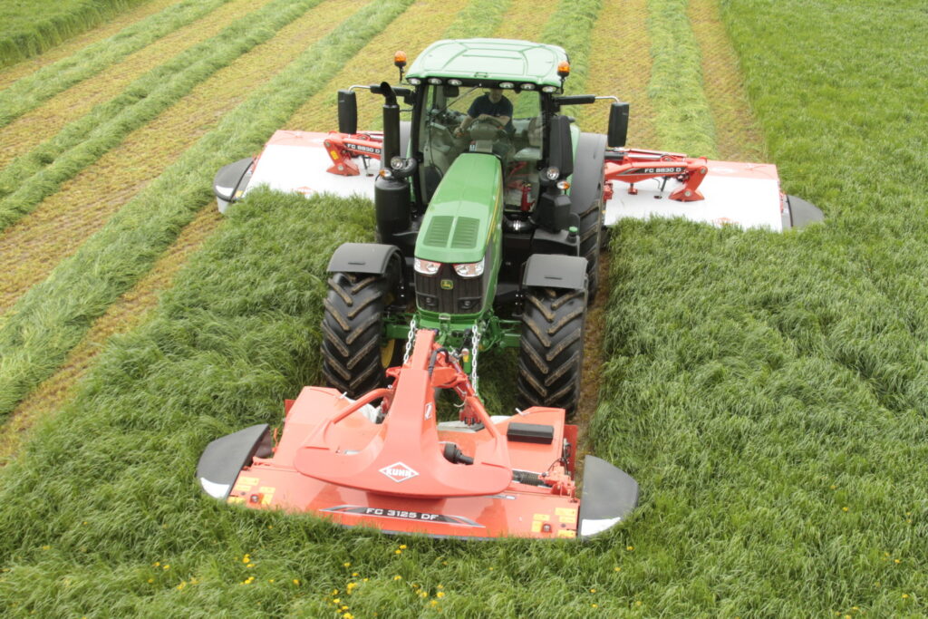 I ve velkém pracovním záběru je zajištěno kopírování terénu. Žací jednotky kombinací Kuhn FC jsou zavěšeny středově ve svém těžišti, takže se mohou kývat. Rozsah pohybů ve vertikálním směru dosahuje až 50 cm. Další výhodou je možnost hydraulicky ovládaného stranového posuvu o 20 cm.