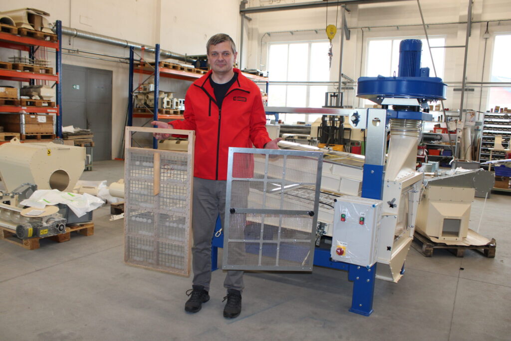 Nejvýznamnější změna nové generace čističky JCC VibroCompact (08) se týká sít: na přání zákazníků jsou dělená do dvou za sebou řazených sekcí. Zásah do údržby je výrazně jednodušší — místo výměny celého rámu včetně části s čisticími kuličkami (vibrující kuličky vizuálně přirovnatelné k „hopíkům“ oklepávají síto a zajišťují čištění sítové plochy za chodu – při správné instalaci a provozu není nutné čištění až do přechodu mezi komoditami) nyní stačí vyměnit pouze malý rámeček s horním třídicím sítem. Konstrukce je navržena tak, aby v čističce zůstaly ty součásti, které se nemusí opakovat v každé výměnné sadě, tedy spodní pletivo a čisticí kuličky,“ vysvětlil Ing. Mašek. Řešení snižuje cenu náhradních sít pro koncové uživatele. Navíc lze měnit pouze polovinu horního síta (druhá část je osazena záslepkou či sítem s menším okem), což je výhodné při čištění menšího množství komodit nebo při provozu na nižší výkon. Síta jsou nově osazena kovovým rámem namísto dřevěného, čímž se eliminuje riziko nežádoucích deformací vlivem vlhkosti a teplotních výkyvů, doplnil technický ředitel.