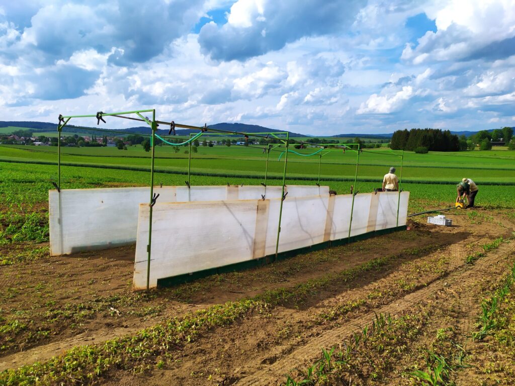 Autoři Ing. David Kincl, Ph.D.1, 3, Ing. Josef Němec1, doc. Ing. Jan Vopravil, Ph.D.1, 3, Ing. Jan Srbek1, Ing. Ladislav Menšík, Ph.D.2 a Ing. Pavel Nerušil, Ph.D.2, (1Výzkumný ústav monitoringu a ochrany půdy, v. v. i., 2Národní centrum zemědělského a potravinářského výzkumu, v. v. i., 3Česká zemědělská univerzita v Praze) ověřovali protierozní účinnost porovnáním konvenčního hospodaření (s orbou) a půdoochranného postupu (bezorebné přímé setí, tzv. no-till) při klasické rozteči (75 cm) a úzkořádkové rozteči (37,5 cm). Hodnocení probíhalo pomocí polního simulátoru deště, který měřil ztrátu půdy a množství povrchového odtoku.