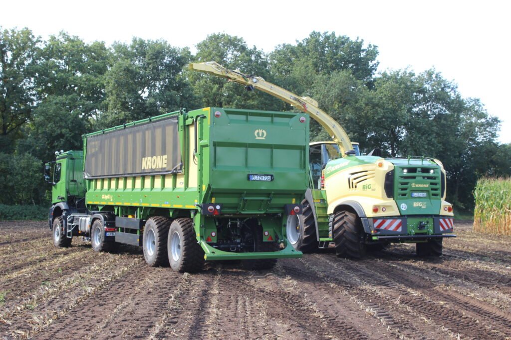 Dodavatelé služeb proto plánují dopravu podle výkonu sklizňového stroje, výnosu hmoty a dopravním vzdálenostem. Týká se to jak přepravních návěsů tažených traktory, tak i nasazení automobilových tahačů návěsů v provedení pro zemědělství. Maximální přepravní kapacita hraje zásadní roli. Návěsy pro tahače Krone GX 520 AgriLiner disponují objemem i 56 krychlových metrů. Odpovídající počet vozů zabraňuje čekání řezačky a zároveň předchází prostojům na poli i u silážního žlabu. Organizace je zvolena tak, aby se vozidla pokud možno nepotkávala ve zúžených úsecích cest ve stejný čas.